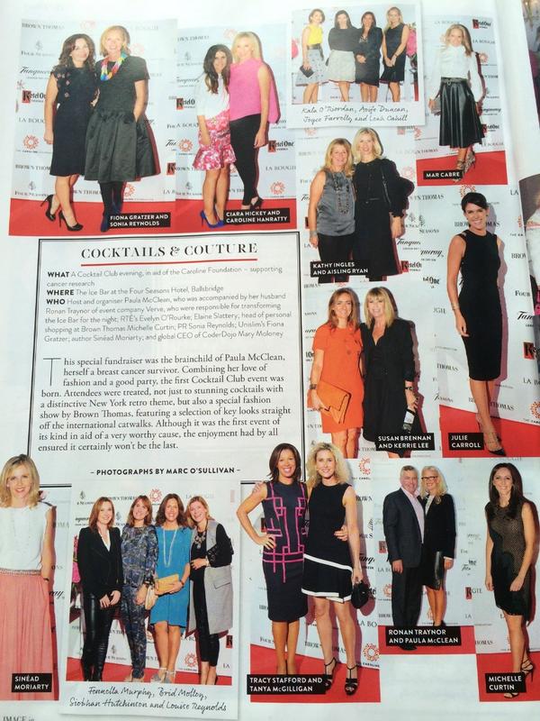 November issue of Image Magazine featured the inaugural ‘Cocktail Club’ fundraiser fashion show in aid of The Caroline Foundation. The fundraiser was the brainchild of Paula McClean, a breast cancer survivor and active campaigner. It was an exclusive, sell out event, which combined Autumn / Winter ’14 fashion showcased by Brown Thomas, signature gin and vodka cocktails from The Four Seasons Hotel.